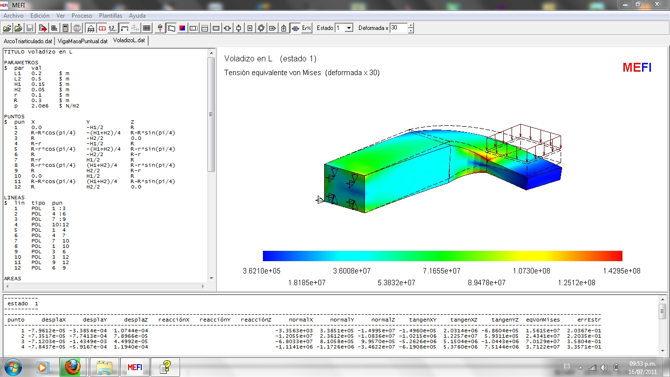 Pequeño pero poderoso programa gratuito que resuelve y analisa situaciones estructurales bidimensionales de cualquier geometría y complicación en cargas aplicadas. Creado por el Departamento de Estructuras y Construcción de la Universidad Politécnica de Cartagena (Colombia), corre en el computador sin instalarse o alojarse en el disco duro.MEFI realiza el análisis estático (elástico - lineal), por el MEF, de problemas de elasticidad y problemas de campos en régimen permanente, y mediante análisis matricial, de estructuras de estructuras planas articuladas o rígidas. El principal objetivo ha sido conseguir un programa sencillo, que permita la verificación de los resultados obtenidos en Resistencia de Materiales, Análisis Estructural y MEF. Viene muy bien documentado y con una cantidad muy grande de problemas explicados y resueltos.